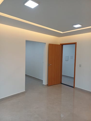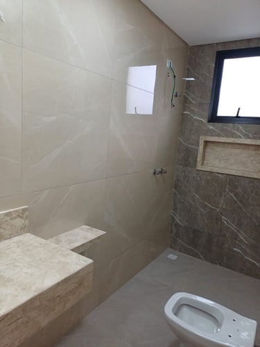 • Acabamentos em porcelanato e gesso com iluminação embutida