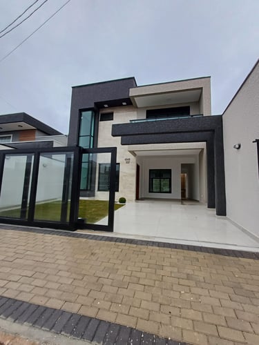 Belo sobrado novo, localizado em rua exclusiva de moradores, no Conjunto Adeodato (Jd. Eucaliptus), uma das regiões que mais valorizam em Fazenda Rio Grande, próxima ao parque industrial e com fácil acesso a Curitiba.