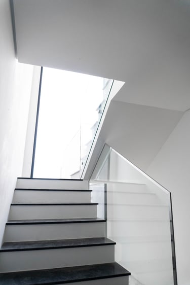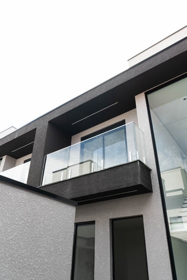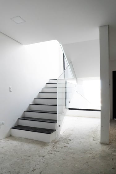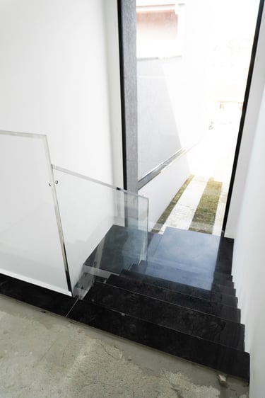• Guarda-corpo em vidro na sacada e escadas