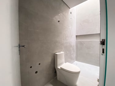 • Banheiros com porcelanato até o teto e bancadas em granito
